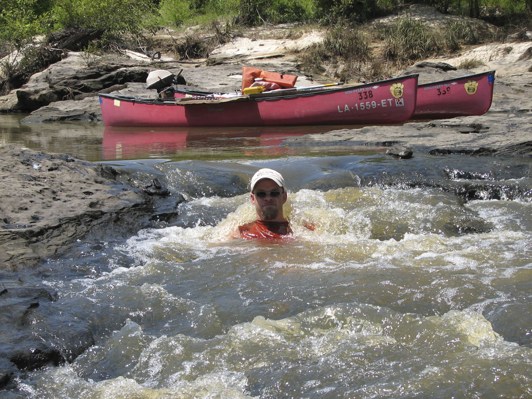 YoYo Trail -Put in at the boat ramp on the spillway canal, paddle down to the confulence of the Sabine River & the generator canal, then paddle back to the put-in. This trip is planned to catch the power generation flow on the return trip, and is approximately 7 miles. There is one rapid in this stretch, a class I (Little Tricky), at the confluence on the spillway canal & Toro Bayou. Just as you turn into the bayou, stay to river left and keep your boat straight through the rapid. On the trip down, there will be several sand bars. Coming back, due to the water level, there will be no sandbars or rapids. CAUTION: It is important on the Yo-Yo trip that you do not paddle past the confluence of the Sabine River & the generator canal! When the generators are turned on, there is a class III rapid and recirculating eddy formed at that point (Ghost Rapid) that is too much for an open canoe. The shuttle fee is determined when the trip is reserved.