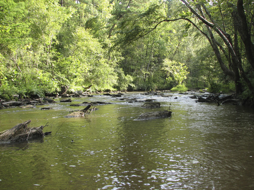 Section 3 - Put in at Hwy 392 bridge and take out at the boat ramp on the spillway canal. This is the shortest section we service at approximately 3 miles. The confluence of the warm, easy flowing Toro with the cold, swift water of the flood canal creates a mixture ideal for striper bass fishing. When you add the rock shoals, section 3 offers not only contrasting river flow, but terrain as well. This section can be combined with Section 1A or 1B of the Sabine River trips to extend the distance. The shuttle fee will be determined when the trip is booked.